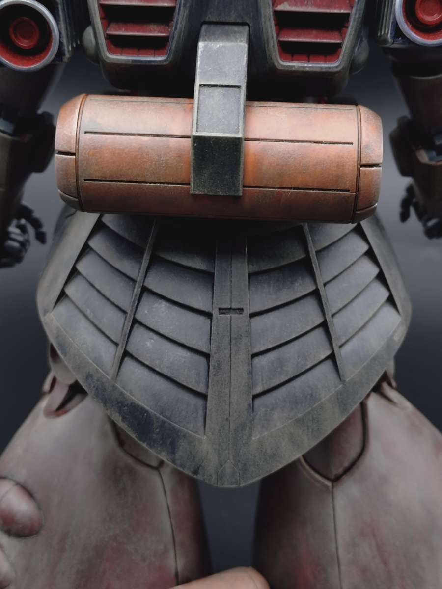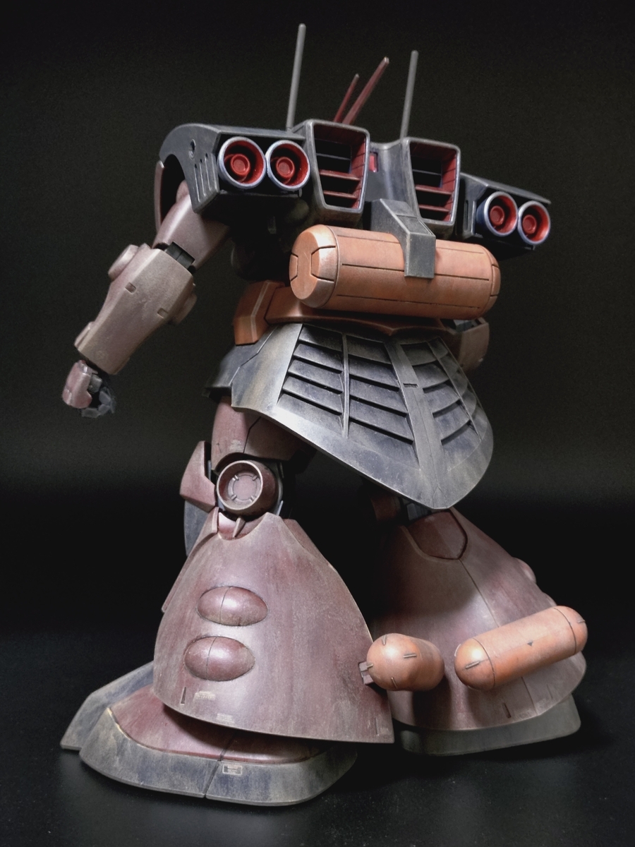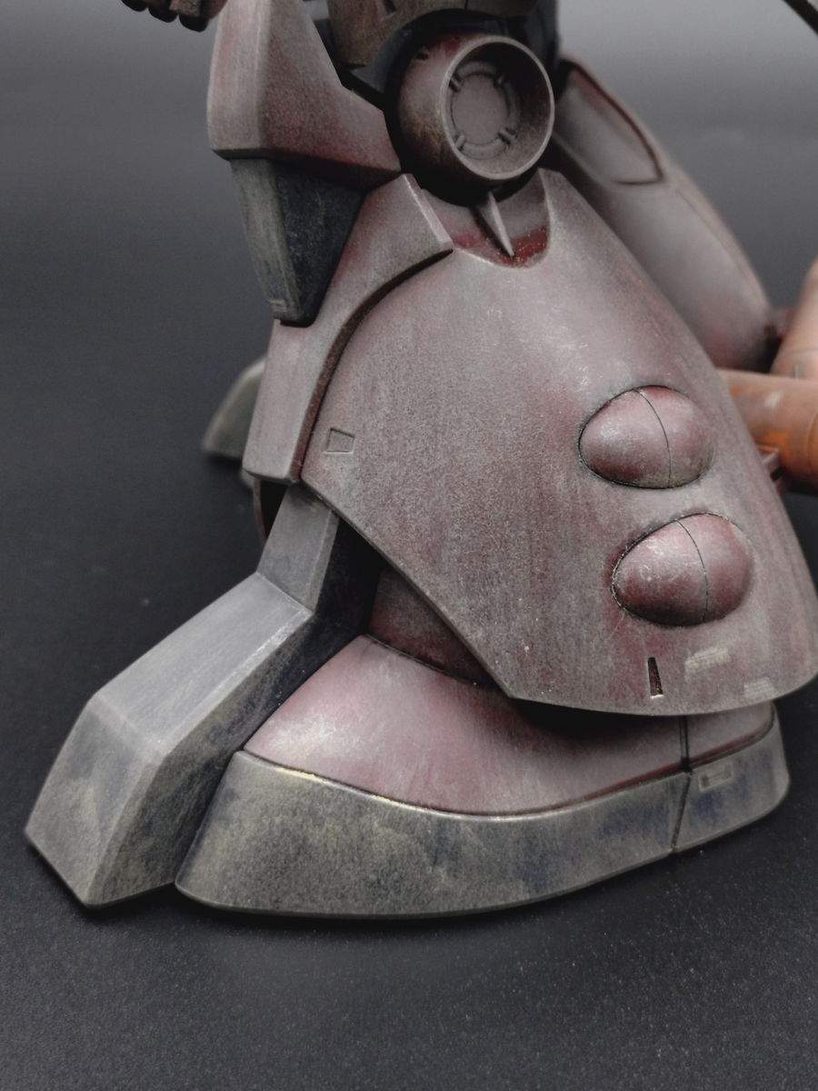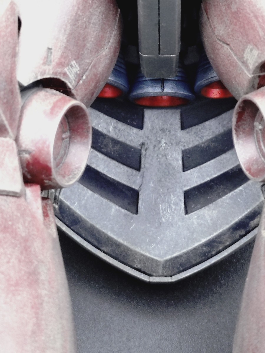背中のタンクの上部や腰部の後ろは砂埃が堆積しやすいだろうという、個人的偏見で他の部分より、強調して汚しました。
